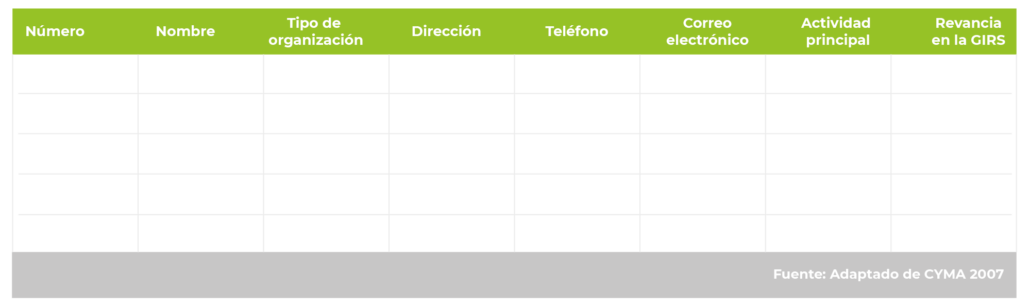 En el siguiente link se pueden obtener una versión MS Word para descargar del listado de actores relevantes en la GIRS.